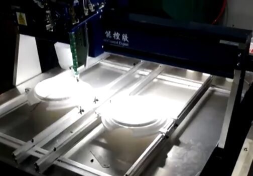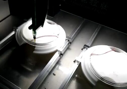 Автоматическая заливка круглого светильника клеем
