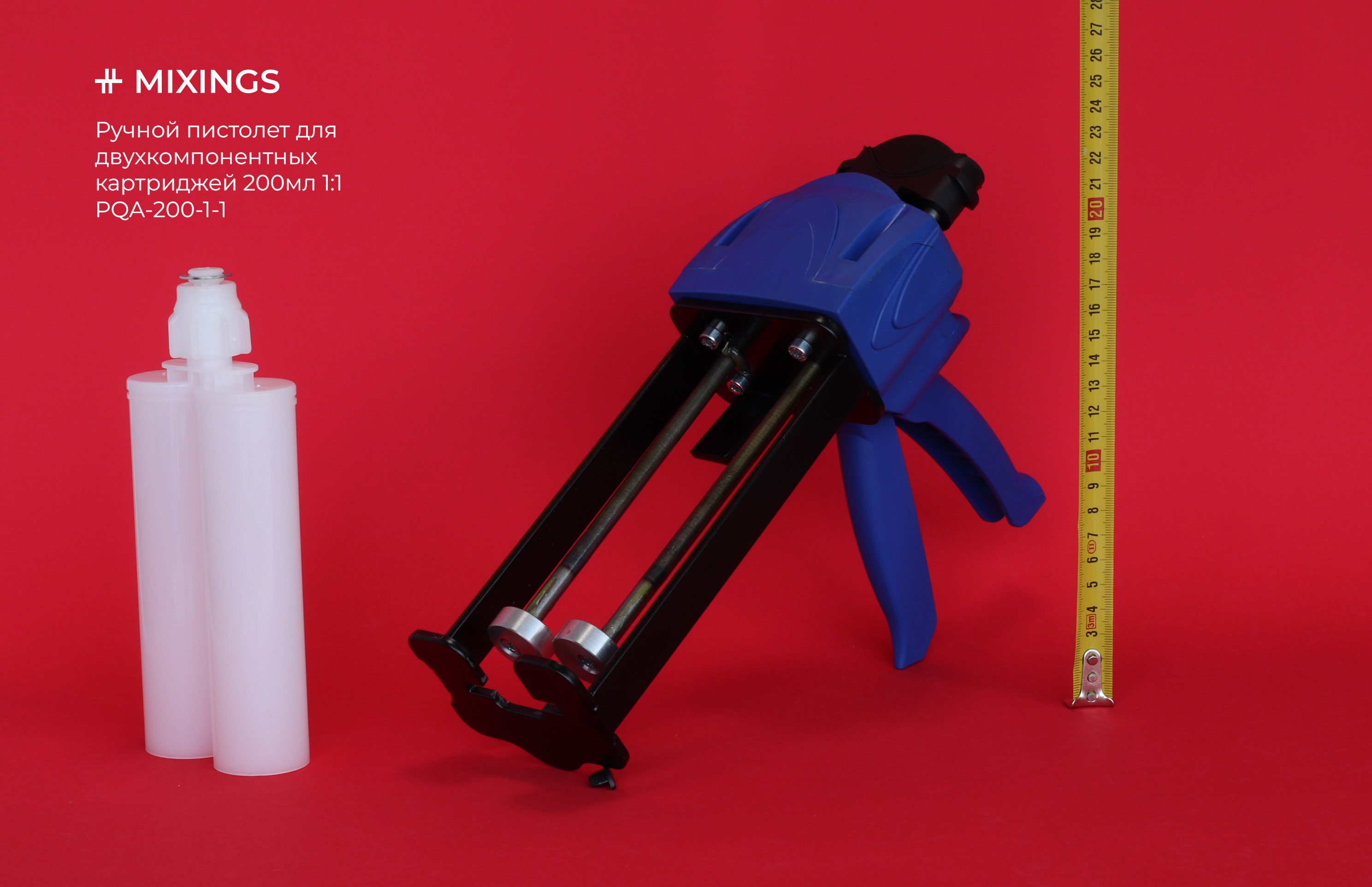 Пистолет-дозатор для двухкомпонентных картриджей 200 мл с соотношением смешивания компонентов 1:1